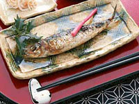 Заметим, что положение рыбы в этом парадном блюде строго регламентировано старинными правилами. Рыбка должна обязательно лежать головой влево и брюшком к гостю - считается, что так легче "разбирать" палочками для еды ее съедобные части. Эти же правила рекомендуют обжаривать рыбу на решетке гриля над древесными углями тоже во вполне определенном порядке: первой доводится до готовности та сторона рыбки, которой она будет лежать на тарелке.