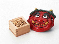Но зима в Японии заканчивается быстро. Третьего февраля наступает период сэцубун, что буквально значит "на переломе сезонов". Он-то и символизирует конец зимы. В эти дни принято покупать жареные соевые бобы и разбрасывать их по дому, приговаривая "Они ва сото, фуку ва ути" - "Черти - вон, счастье - в дом!" Такие же обряды проходят в храмах при большом стечении народа; считается, что тот, кто поймает разбрасываемые бобы, обязательно вскоре поймает и удачу. По старинному поверью, в этот день каждый человек должен съесть столько бобов, сколько ему лет. Впрочем, сейчас перед февральским праздником весны дома и в ресторанах все чаще едят не реальные бобы, а конфеты в виде бобов, которые, как считается, не хуже своих "прародителей" служат для защиты от всякого рода нечисти. Главные цвета самого праздника - опять-таки красный и белый. Красный в данном случае относится к озлобленным чертям, которых гонят взашей из страны Японии, белый - цвет кожи дородной красавицы - символ счастья, богатства и благополучия.