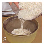 1. Положите рис в большую миску и тщательно промойте, несколько раз сменив воду, до тех пор, пока не станет прозрачной. Откиньте на дуршлаг и оставьте на 1 ч. Если у вас мало времени, замочите промытый рис в холодной воде на 10-15 мин, откиньте на дуршлаг.